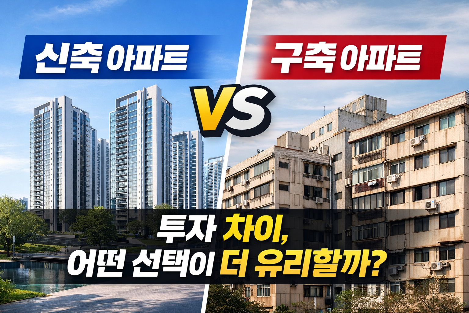 신축 아파트와 구축 아파트 투자 중 절대적으로 더 유리한 선택은 존재하지 않습니다.