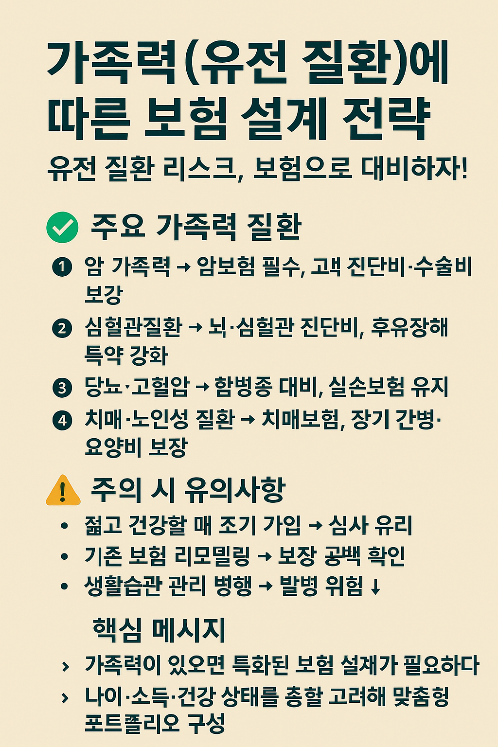 #가족력보험 #유전질환보험 #보험설계전략 #암보험 #심혈관보험 #당뇨보험 #치매보험 #보험리모델링 #실손보험 #재테크전략 #보험팁 #보험공부 #가족력리스크 #재테크초보 #생활안전망 #보험리스크관리 #보험가입전략 #노후준비 #티스토리재테크 #건강보험
