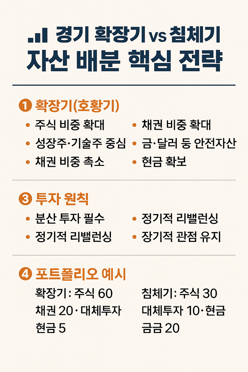 📌 오늘 정리한 내용을 참고해 확장기에는 수익을 극대화하고, 침체기에는 자산을 지키는 전략을 세워 보시기 바랍니다.