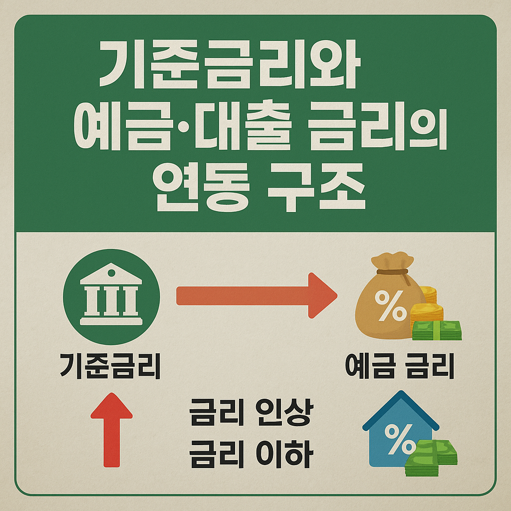 👉 예시: 기준금리 3% → 3.5%로 인상 → 정기예금 금리 2.8% → 3.3%로 동반 상승