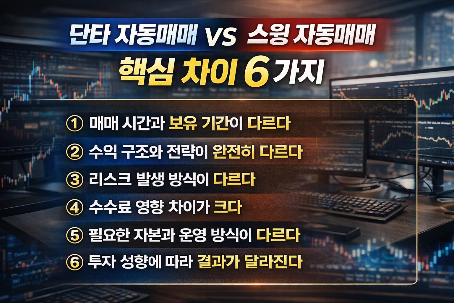 “단타 자동매매가 좋을까?” , “스윙 자동매매가 더 안정적일까?” 둘 다 자동매매지만 전략, 리스크, 수익 구조가 완전히 다릅니다.