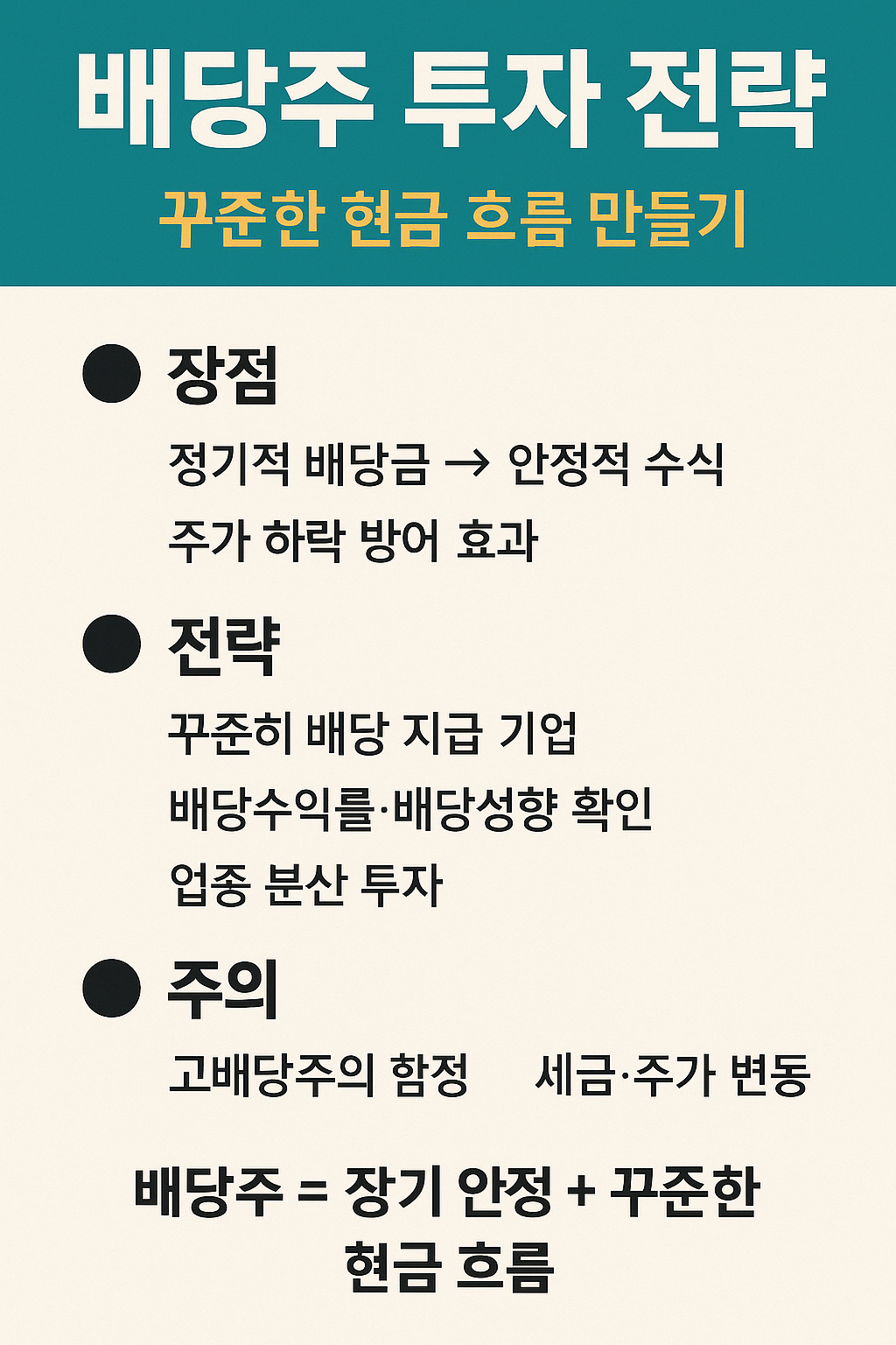 👉 즉, 주식을 통해 **‘현금흐름형 자산’**을 만드는 투자 방식입니다.