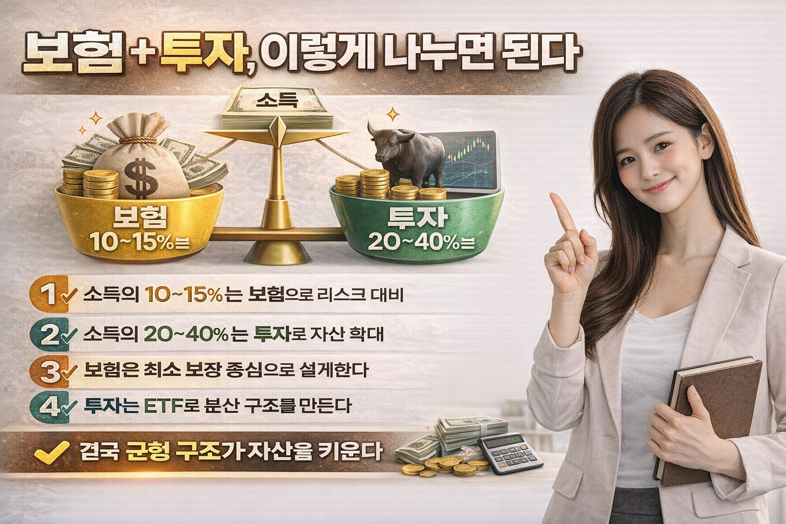 👉 보험 없이 투자만 하면 ‘한 번의 사고’로 무너질 수 있습니다. 투자 없이 보험만 하면 자산은 절대 커지지 않습니다.