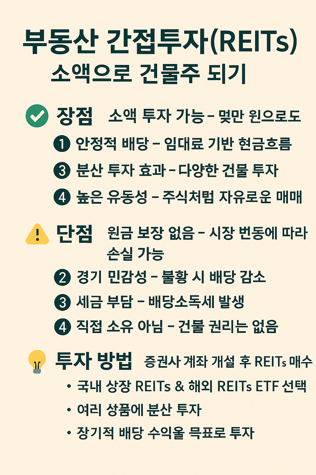 - 📌 직접 건물 투자 자금은 부족하지만, 부동산에서 발생하는 임대 수익을 원하시는 분