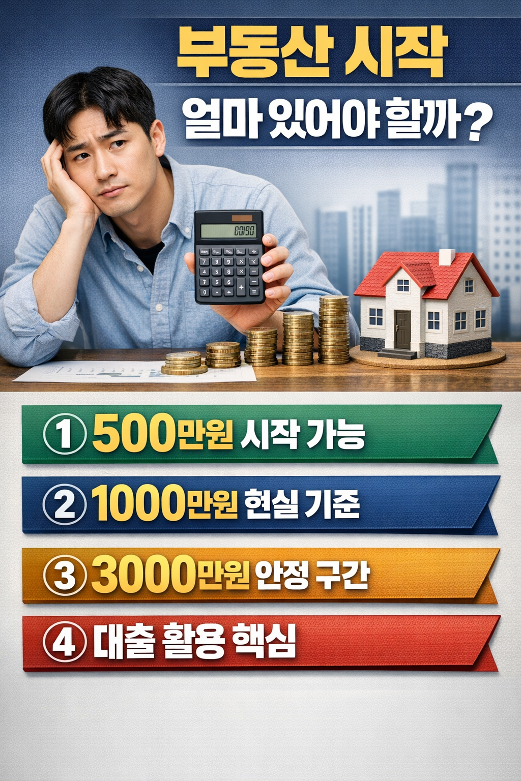 부동산을 처음 시작하려는 분들이 가장 많이 하는 질문은 이것입니다. “도대체 얼마 있어야 시작할 수 있을까?”