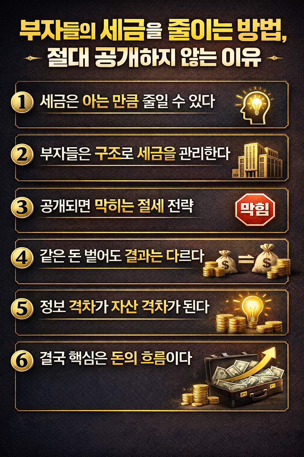 즉, “세금 줄이는 기술”보다 “돈을 계속 만들어내는 구조”를 먼저 만듭니다.