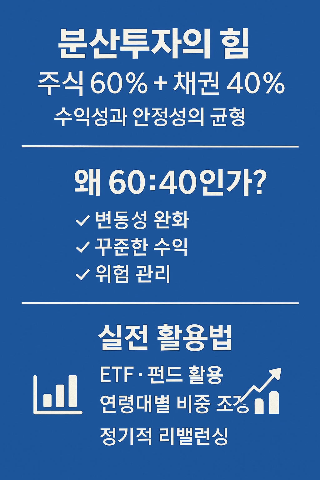 #분산투자 #자산배분 #6040전략 #ETF투자 #포트폴리오 #재테크전략 #주식투자 #채권투자 #안정적투자 #장기투자 #자산관리 #연금투자 #재무설계 #금융지식 #투자습관 #리밸런싱 #글로벌투자 #인플레이션대비 #안전자산 #꾸준한투자