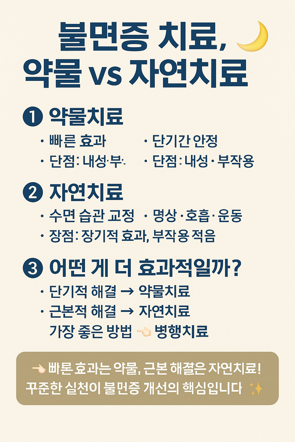 👉 자연치료는 장기적·근본적 불면증 관리에 적합합니다.