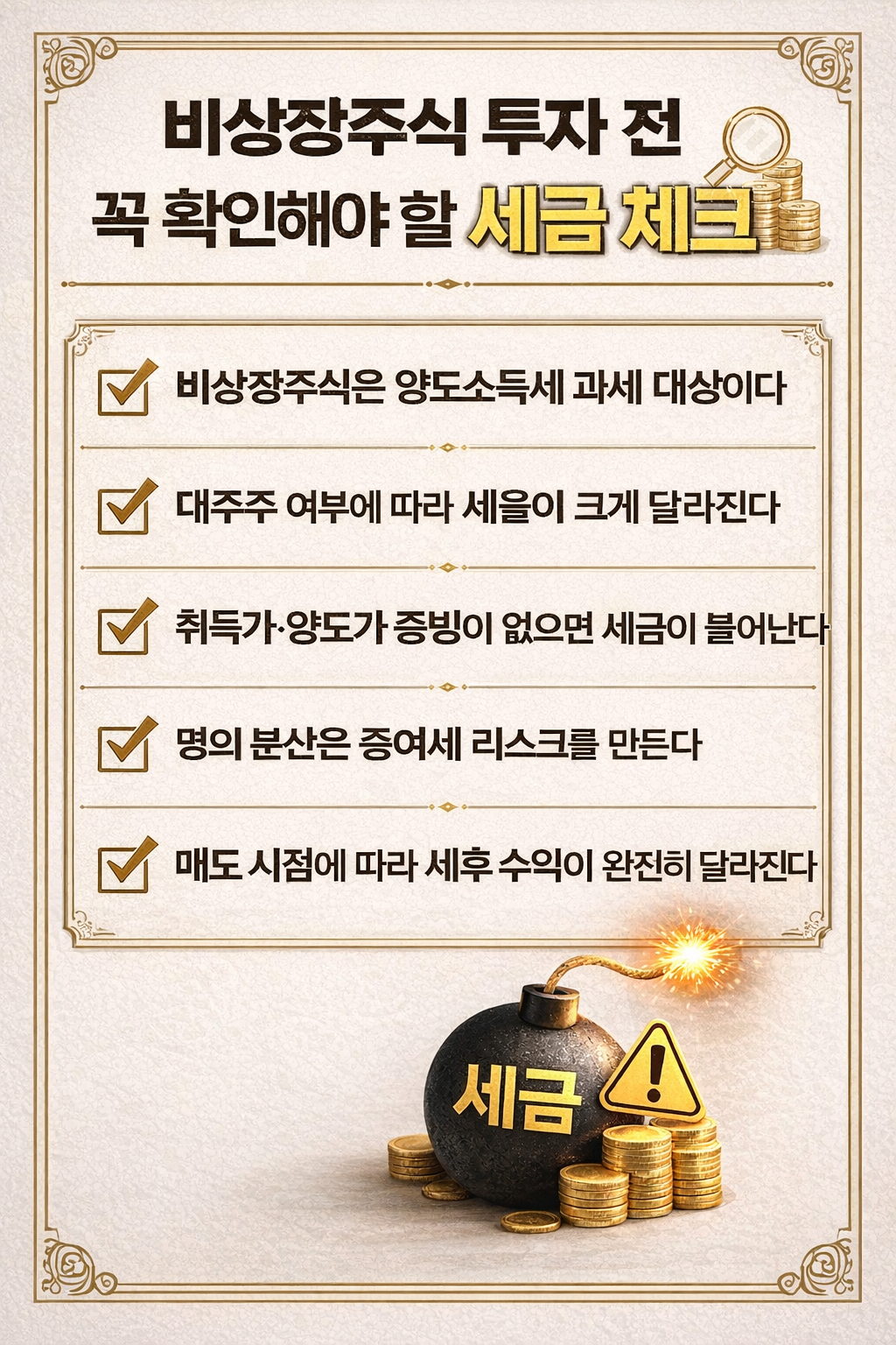 비상장주식 투자 시 세금 폭탄을 피하는 체크리스트 (수익보다 먼저 확인해야 할 것은 ‘세금 구조’입니다)