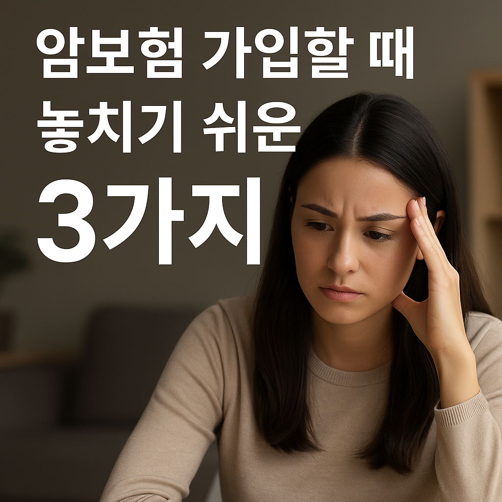 - 특약 구성: 암 진단금 외에 수술비, 입원비, 항암치료비 특약을 넣어야 실제 치료 과정에서 충분히 보장됩니다.
