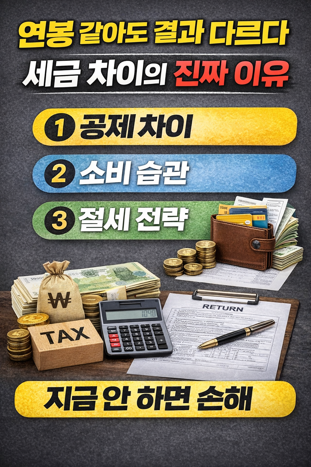 이번 글에서는 연봉이 같아도 세금이 달라지는 이유, 직장인이 반드시 알아야 할 절세 핵심, 실제 돈을 아끼는 방법을 현실적으로 정리해드립니다.