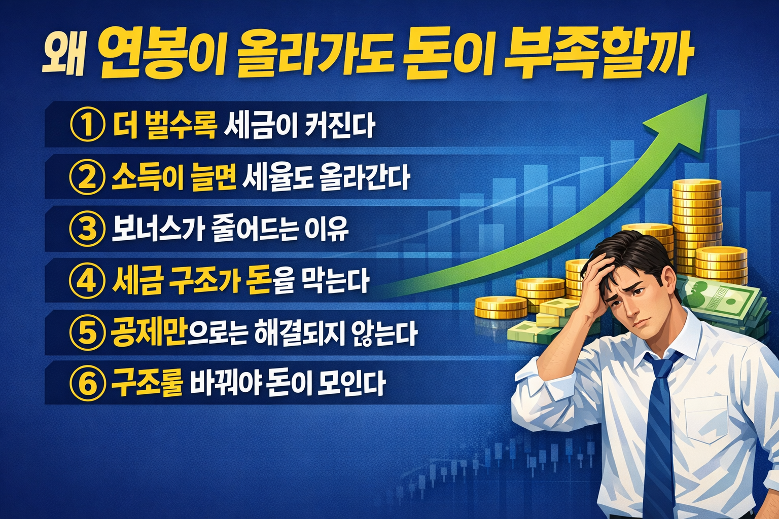 연봉이 올라가는 것은 분명 긍정적인 변화입니다. 하지만 더 중요한 것은 실제로 손에 남는 돈입니다. 세금 구조를 이해하지 못하면 연봉이 아무리 올라가도 체감 소득은 크게 변하지 않습니다.