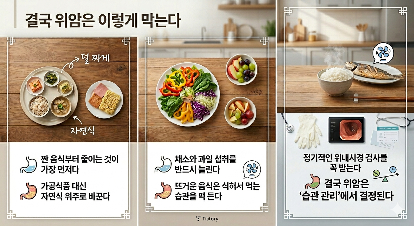 3️⃣ 위암 위험을 줄이는 식습관 핵심 기준