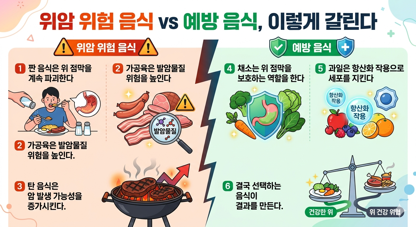 1️⃣ 위암 위험을 높이는 음식 (가장 먼저 줄여야 하는 것)