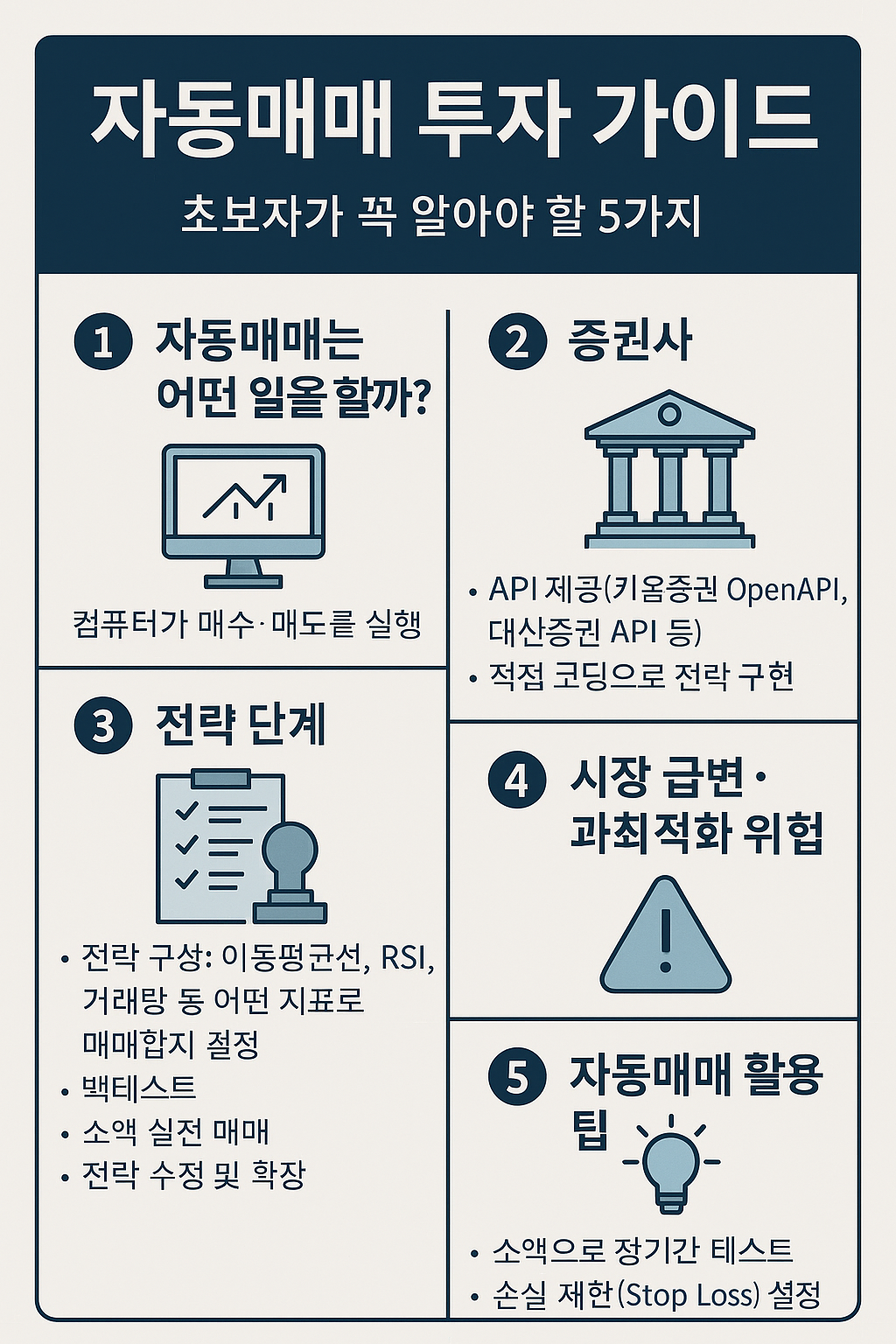 - 자동매매는 보조 투자 도구이지 절대적인 답이 아님