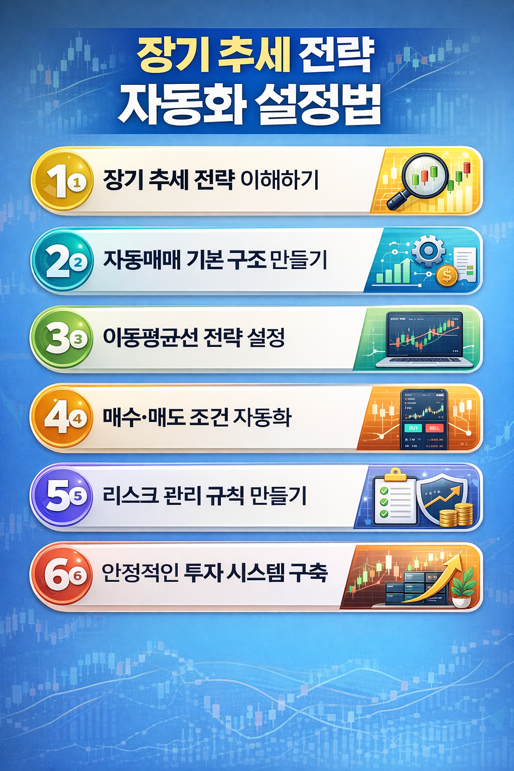 오늘은 장기 추세 전략을 자동매매 시스템으로 설정하는 방법을 단계별로 정리해보겠습니다.