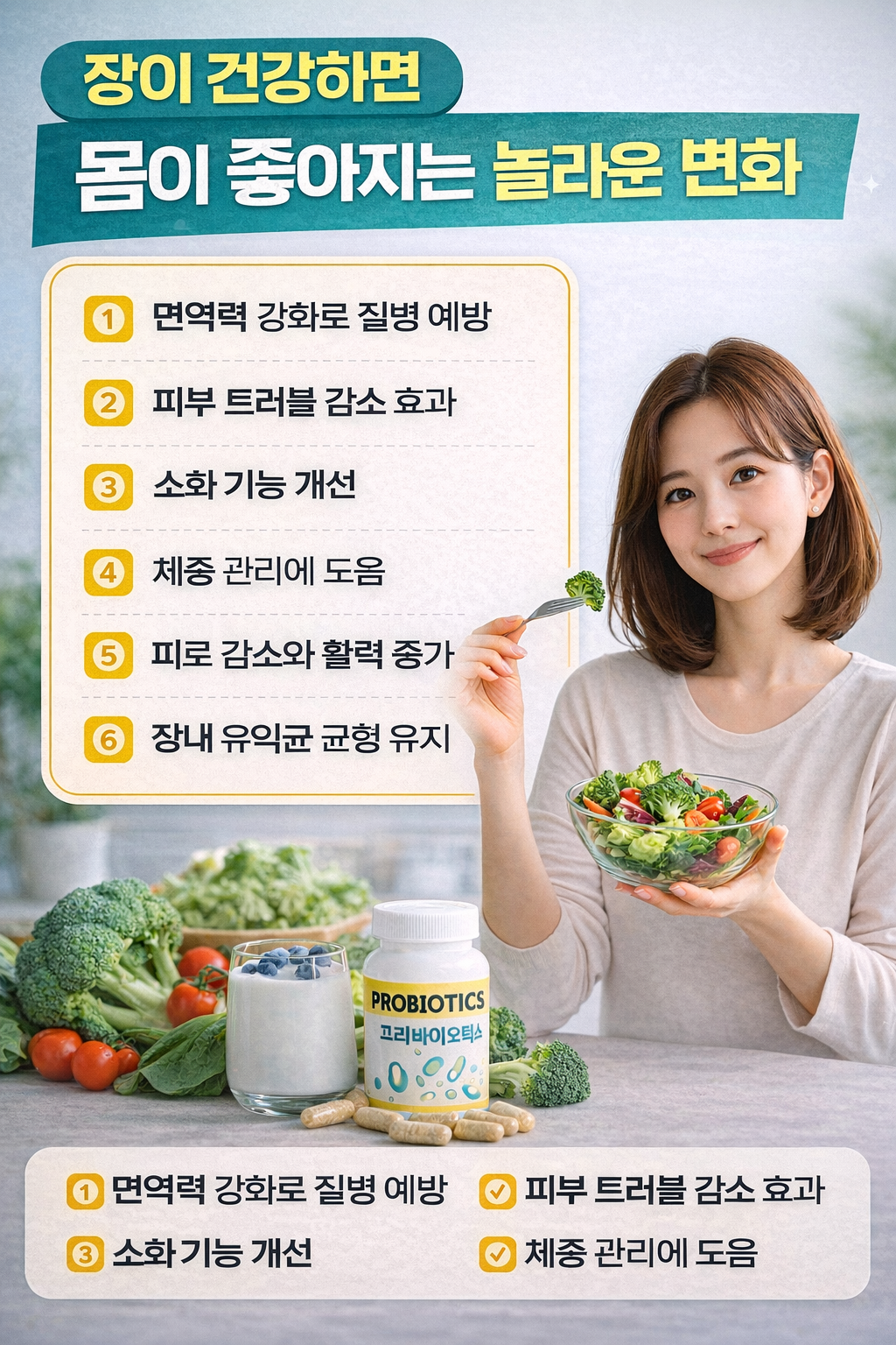 최근 의학 연구에서도 장 건강이 면역력, 체중 관리, 피부 상태, 심지어 기분과 스트레스까지 영향을 준다는 사실이 밝혀지고 있습니다.