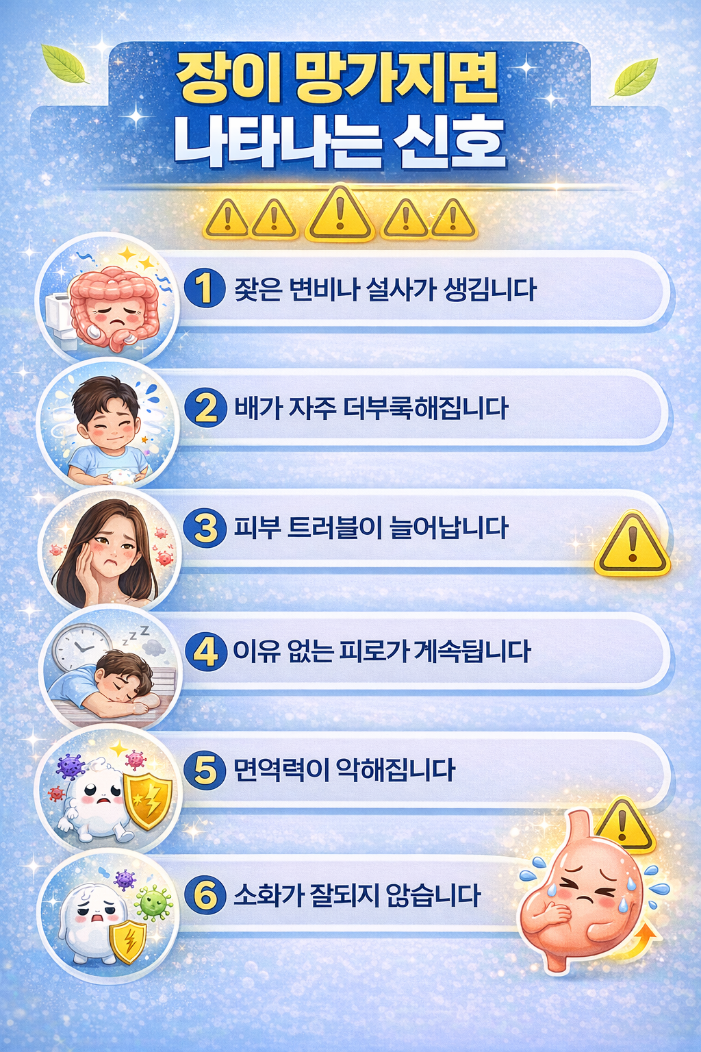 5️⃣ 장 건강이 나쁘면 나타나는 신호
