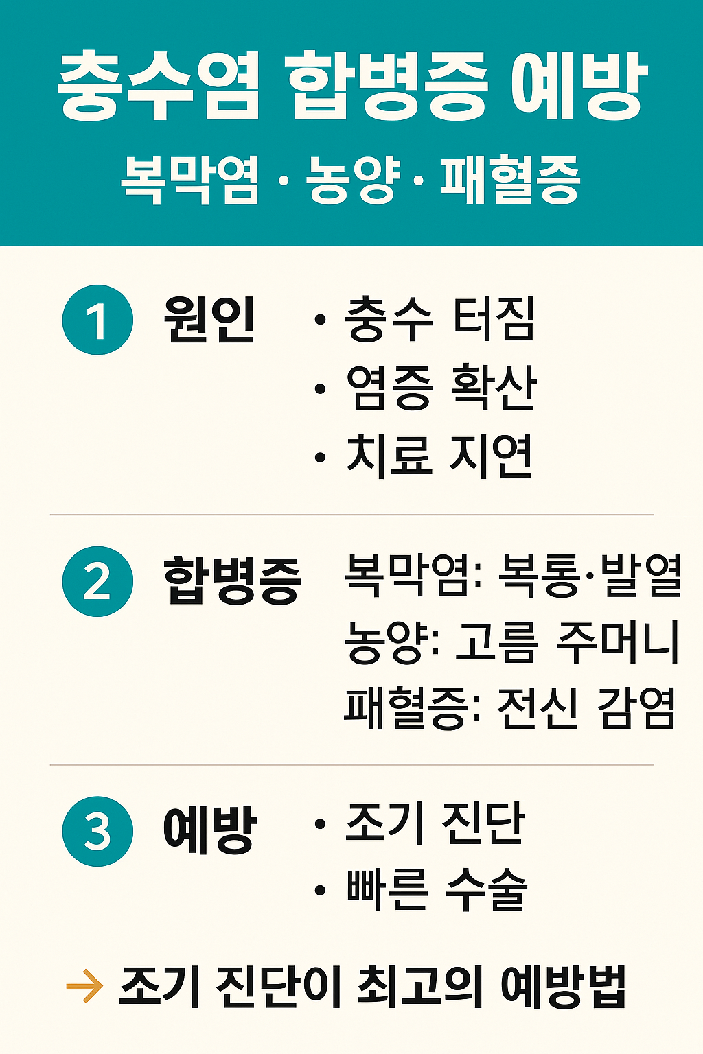 👉 조기 진단 + 신속한 수술 + 철저한 관리 = 합병증 예방의 핵심입니다.