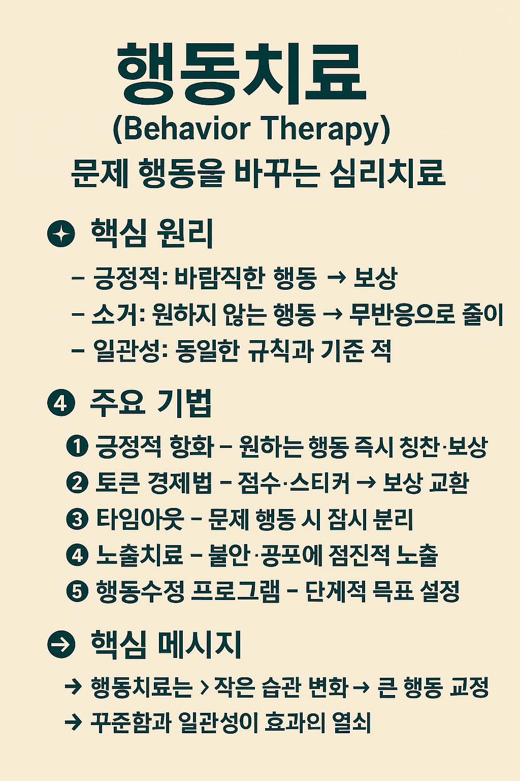 행동치료는 단순히 “나쁜 습관 고치기”가 아니라, 삶의 질을 높이고 자기조절 능력을 키워주는 심리치료입니다.