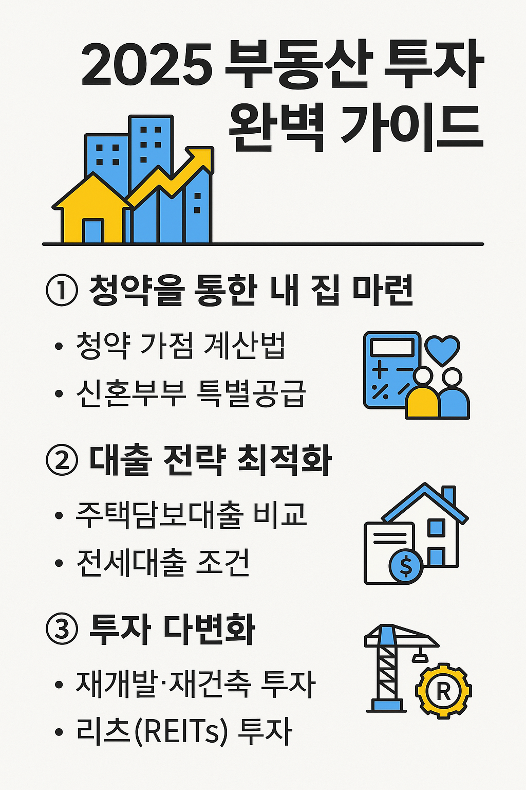 #부동산 #청약 #청약가점 #신혼부부특공 #전세대출 #주택담보대출 #재건축 #재개발 #부동산세금 #양도세절세 #종부세 #부동산투자 #리츠투자 #수익형부동산 #2025재테크 #내집마련 #자산관리 #부동산전망 #투자전략 #재테크정보