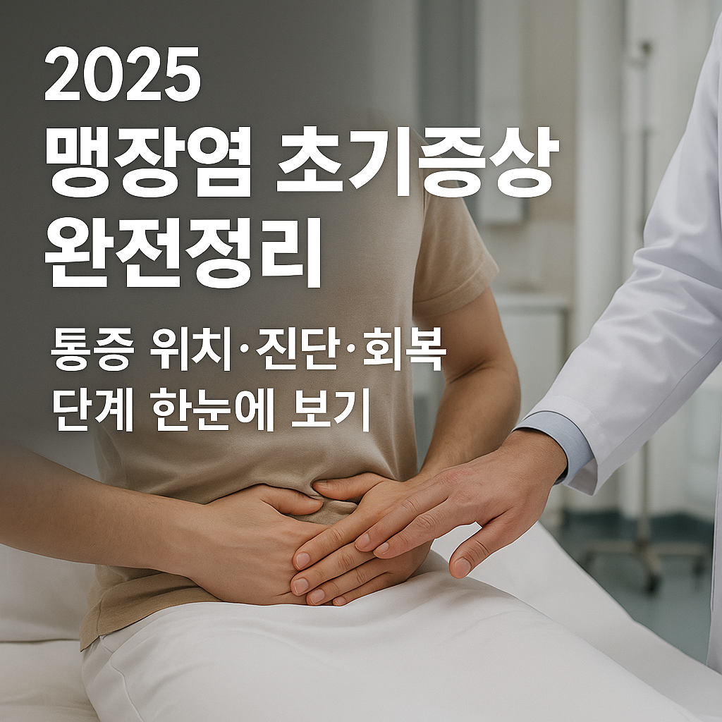 맹장염(충수염)은 급성 복통 원인 1위이며, 초기에 놓치면 복막염·패혈증으로 이어질 수 있습니다. 특히 바쁜 일상 속에서 위염·장염·소화불량과 쉽게 혼동되기 때문에 정확한 초기 증상 파악이 중요합니다.