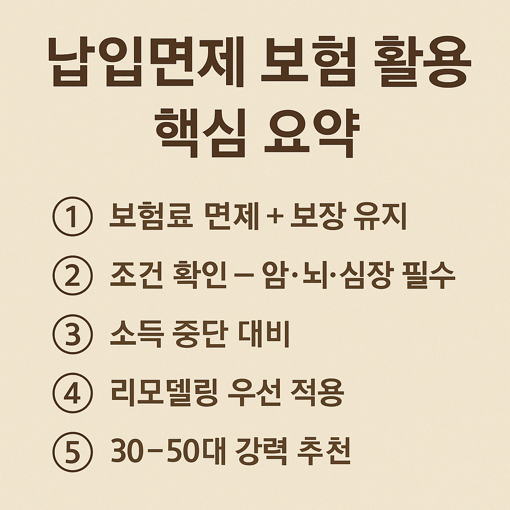납입면제는 보험의 ‘옵션’이 아니라 핵심 기능입니다. 보험은 평소에는 필요 없지만, 위기 순간 반드시 필요한 것입니다.