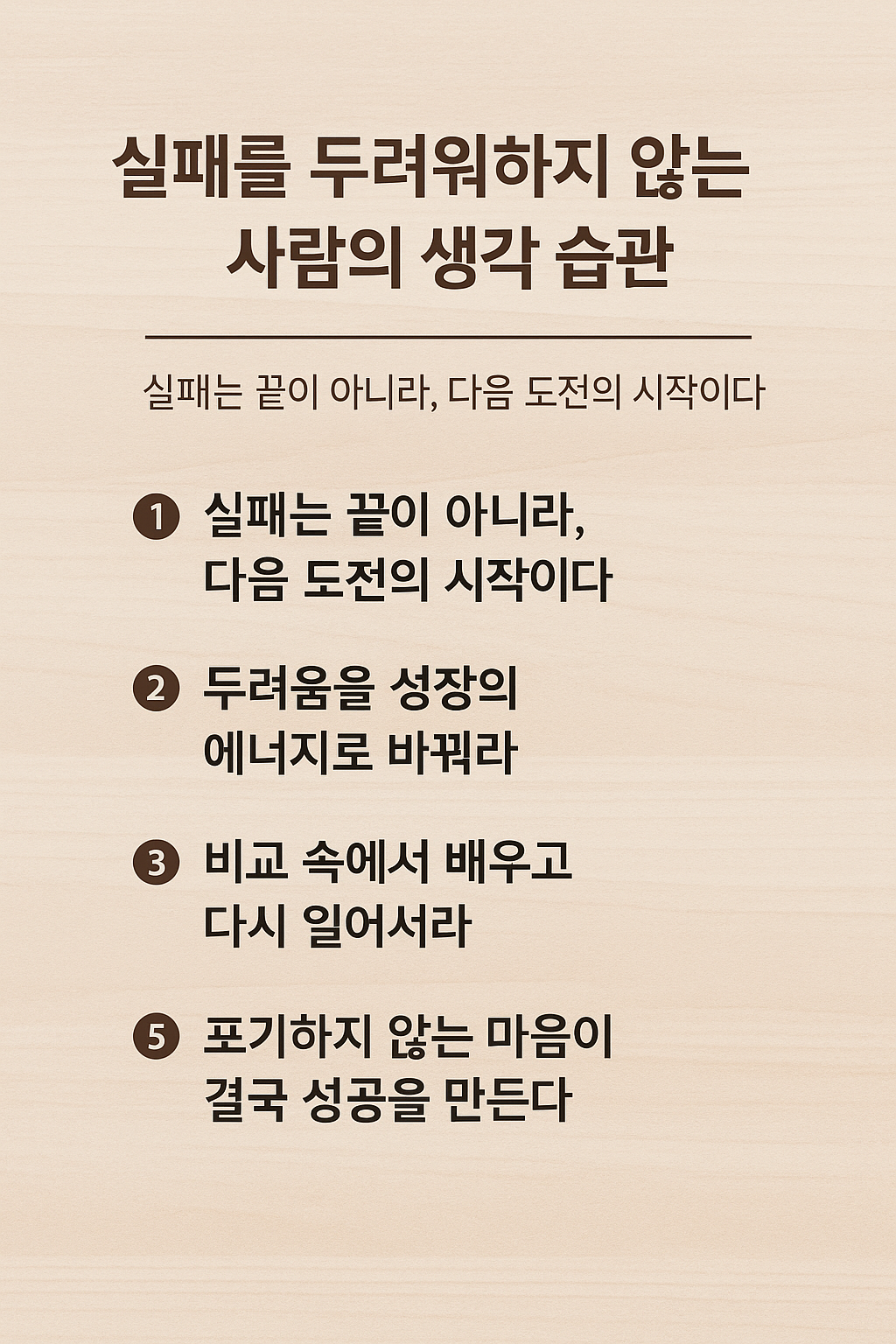 성공하는 사람들은 실패를 피하려 하지 않습니다. 오히려 실패를 성장의 신호로 받아들입니다. 오늘은 ‘실패를 두려워하지 않는 사람들’의 생각 습관을 구체적으로 살펴보겠습니다.