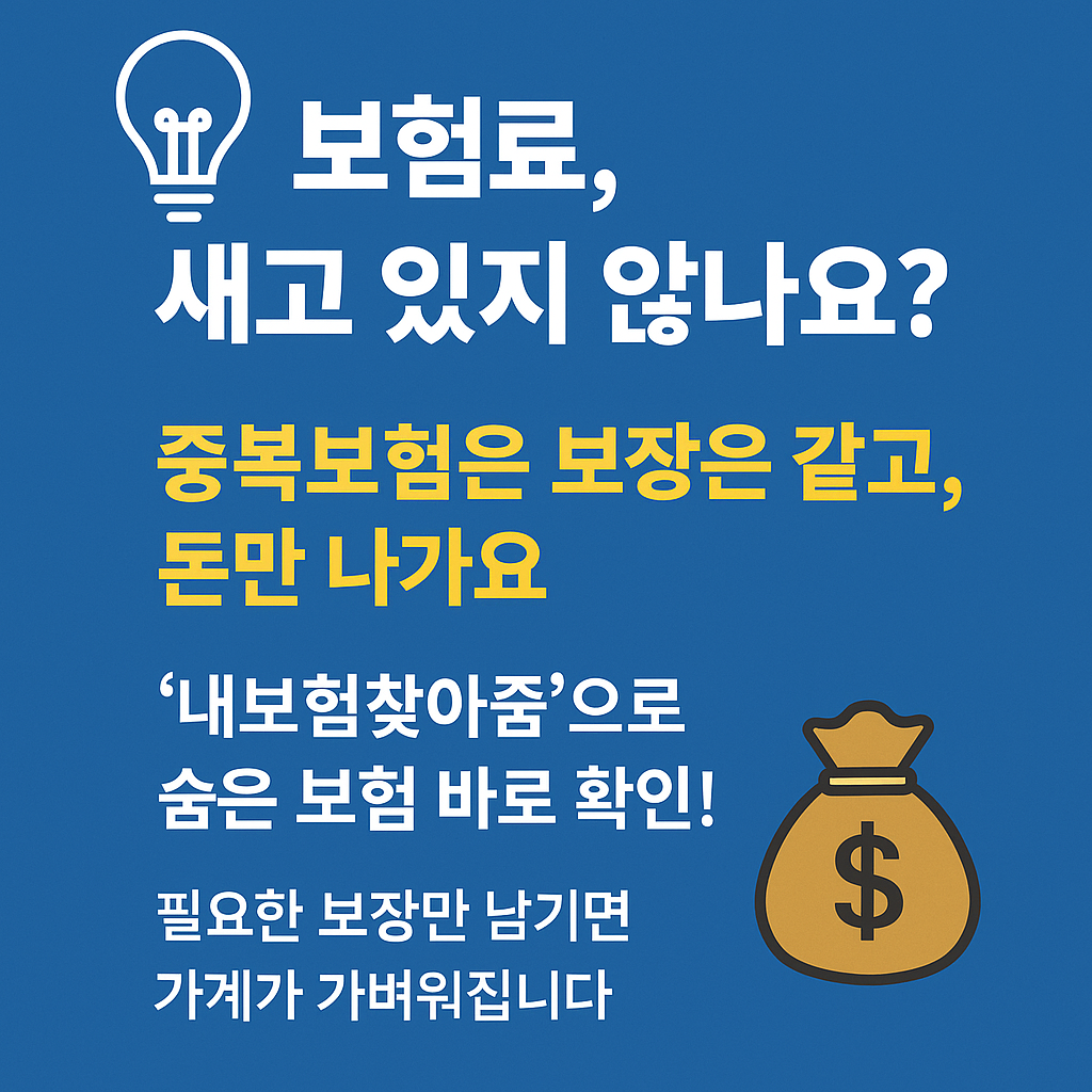 👉 중복보험을 정리하면 매달 납입액이 줄고, 진짜 필요한 보장에 집중할 수 있습니다. 오늘 꼭 “내보험찾아줌”에서 확인해보세요.