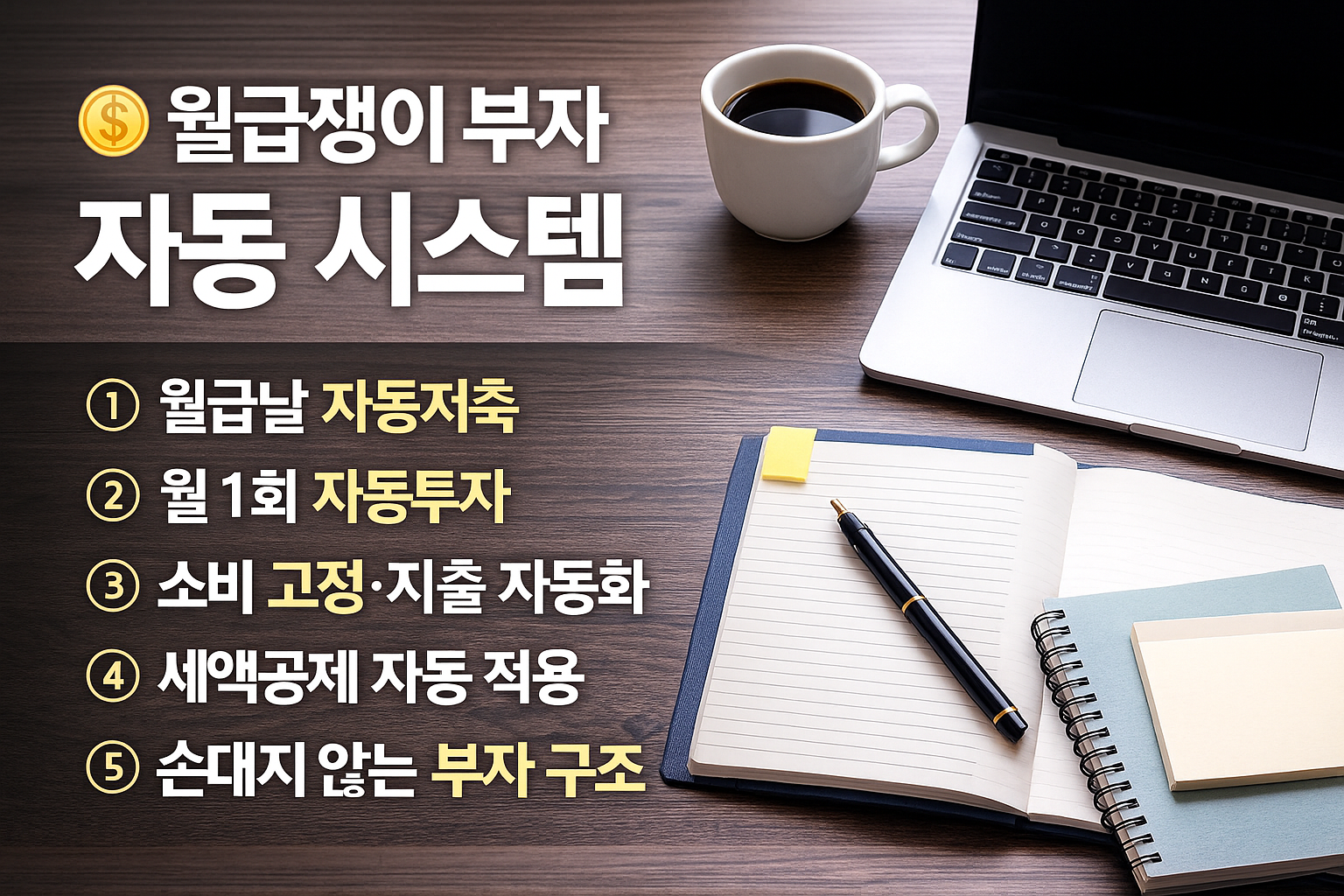 월급은 매달 정해진 날짜에 들어오지만, 부는 매달 자동으로 쌓이는 시스템이 있을 때만 성장합니다. 돈이 안 모인다는 사람들의 공통점은 의지가 부족한 것이 아니라, 설계된 자동 구조가 없기 때문입니다. 스스로 통제하지 않아도, 손도 대지 않아도 계좌가 알아서 굴러가는 구조, 그게 바로 월급쟁이 부자들의 기본 장치입니다.