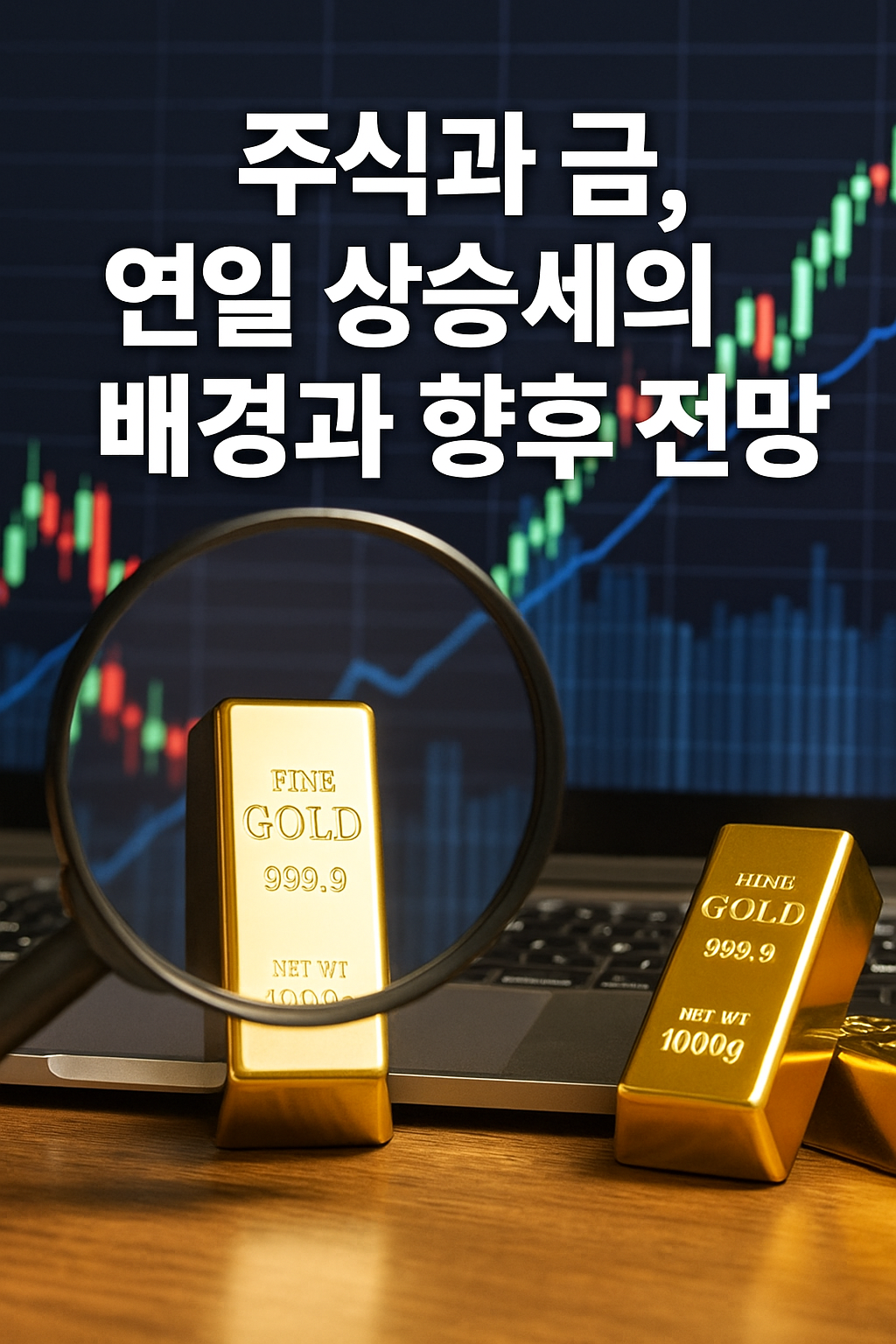 주식과 금의 동반 상승은 **“위험과 안전의 균형 장세”**를 보여주는 신호입니다. 이제는 단순히 ‘어떤 자산을 사느냐’보다, **‘자산 간 비중을 어떻게 조정하느냐’**가 더 중요해졌습니다. 2025년 하반기 시장은 불확실하지만, 불안 속에서도 기회는 분명히 존재합니다. 주식의 성장성과 금의 안정성을 조화롭게 담아내는 전략이 이번 상승 흐름을 ‘단기 반등’이 아닌 ‘장기 수익’으로 바꿔줄 열쇠가 될 것입니다.
