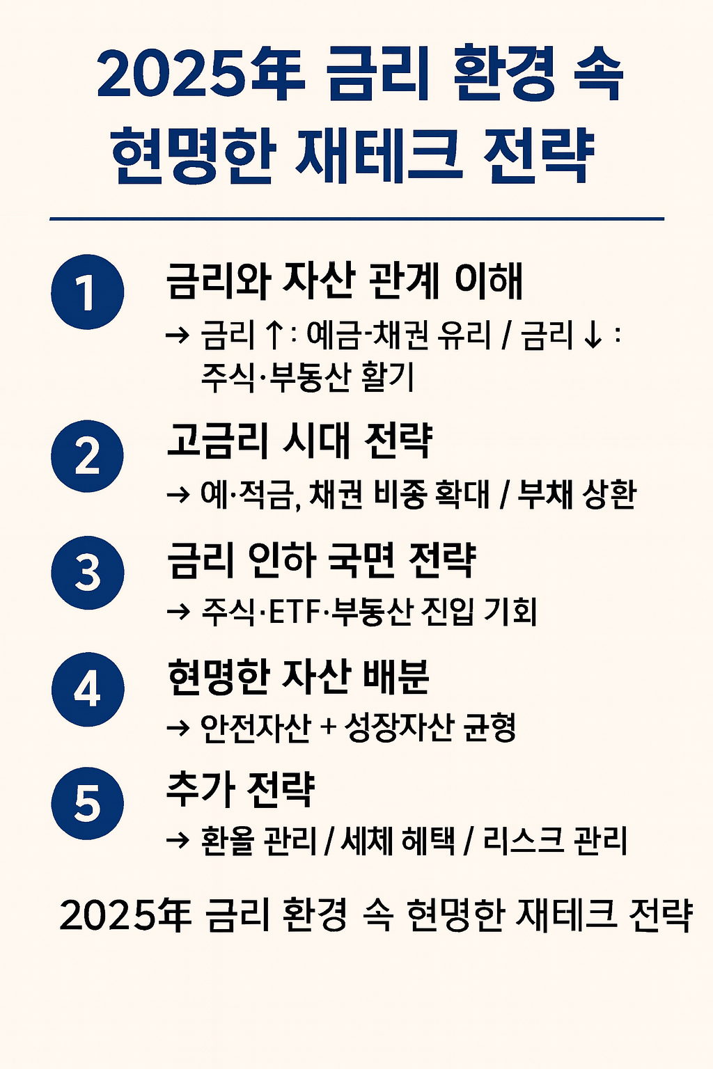 - 금리 흐름을 예측하기는 어렵기 때문에, 👉 **안정형(예금·채권) + 성장형(주식·ETF)**을 적절히 섞어 두는 것이 안전