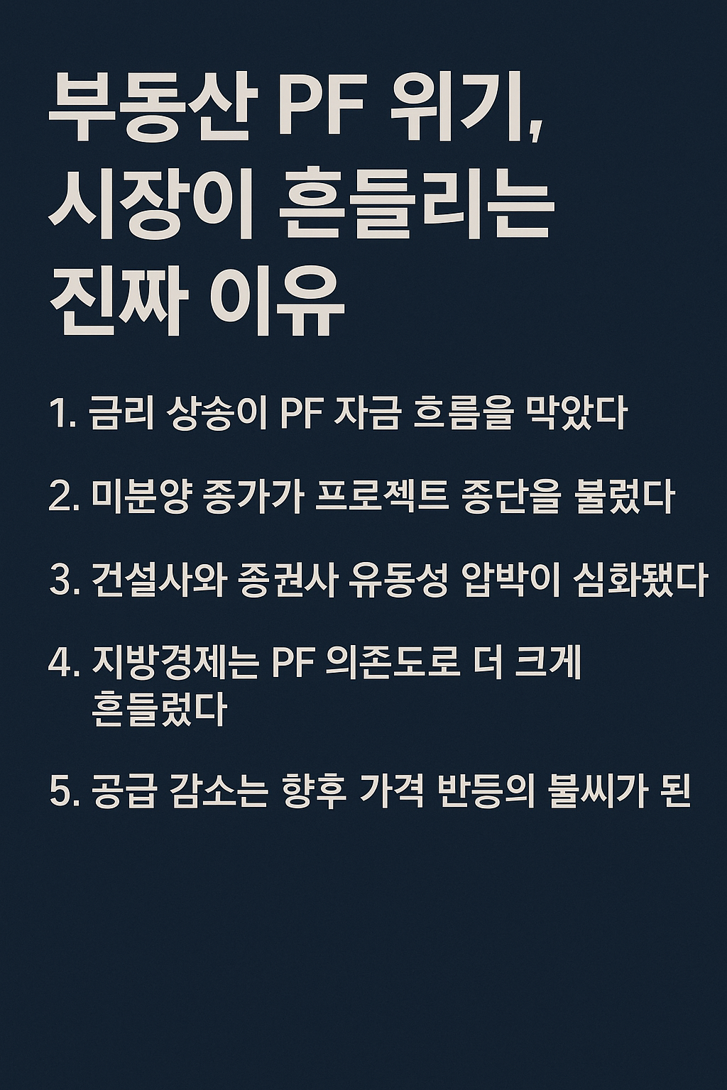 👉 PF 위기는 단기 충격이지만, 중기에는 시장 구조를 재편하는 핵심 변수다.