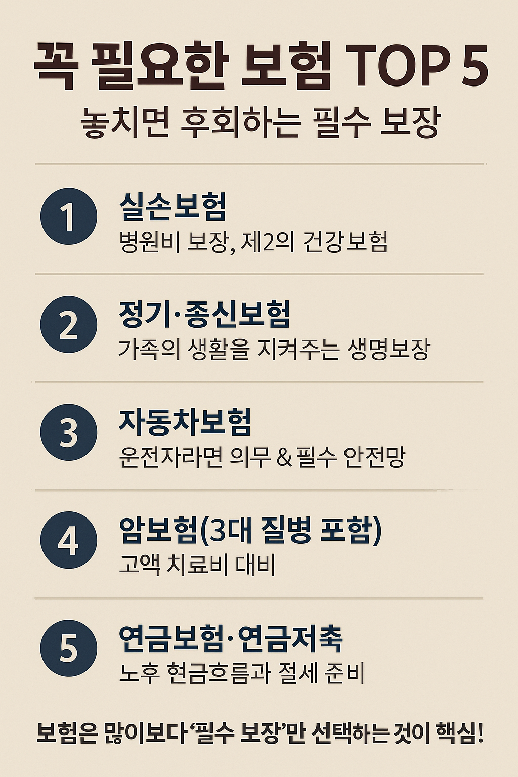✅ 결론 – 보험은 ‘많이’가 아니라 ‘꼭 필요한 것만’