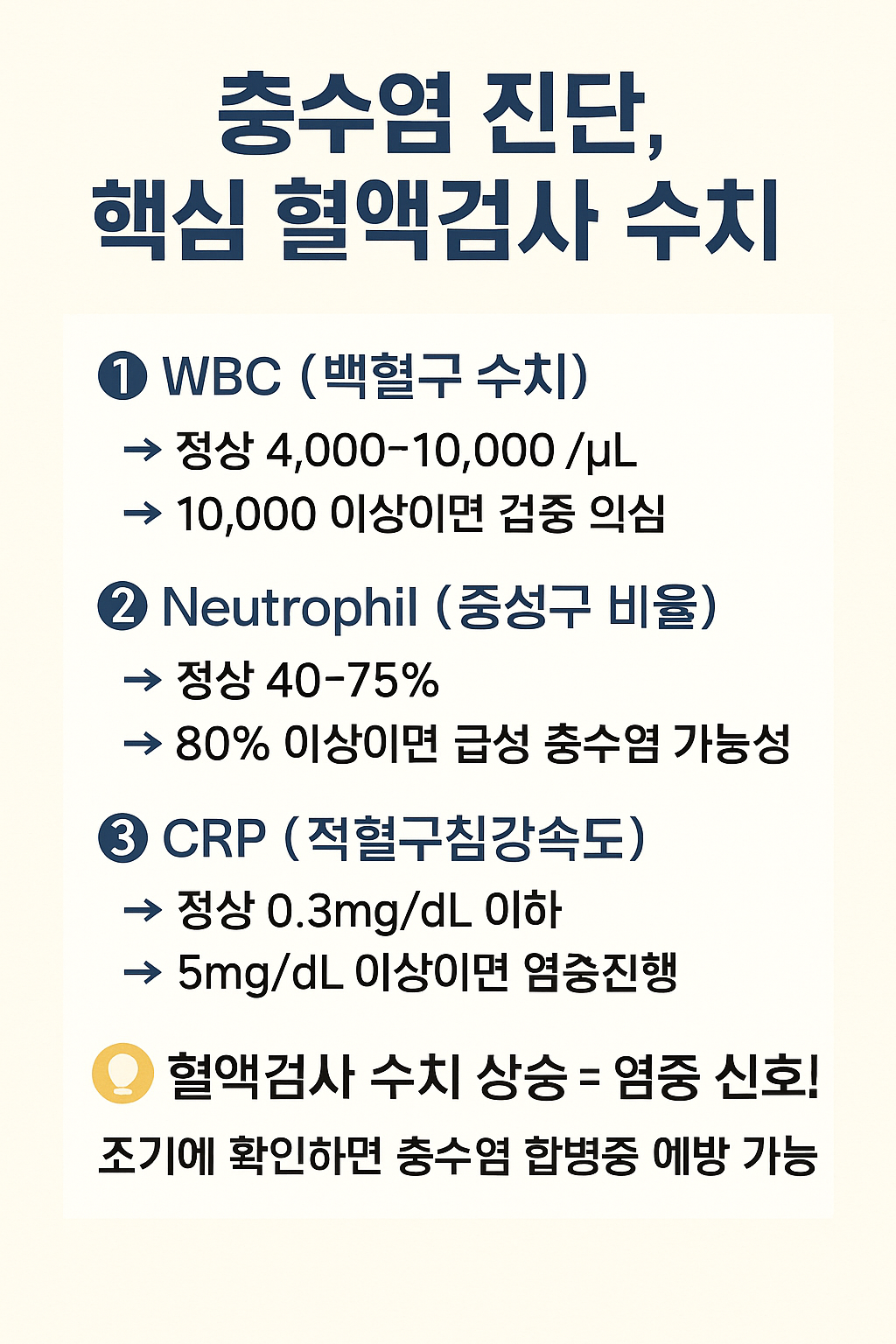 #충수염 #맹장염 #혈액검사 #WBC #CRP #중성구비율 #염증수치 #복통진단 #급성충수염 #내과정보 #의학상식 #병원검사 #응급질환 #복부통증 #건강정보 #진단검사 #혈액검사수치 #의료지식 #조기진단 #응급의학