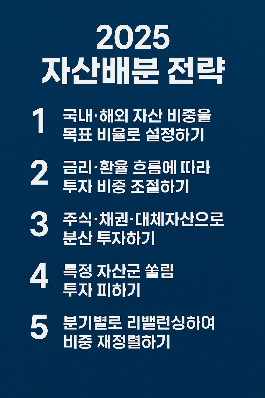 2025년은 해외 중심 자산배분 + 국내 성장주 보완 전략이 효과적입니다.
