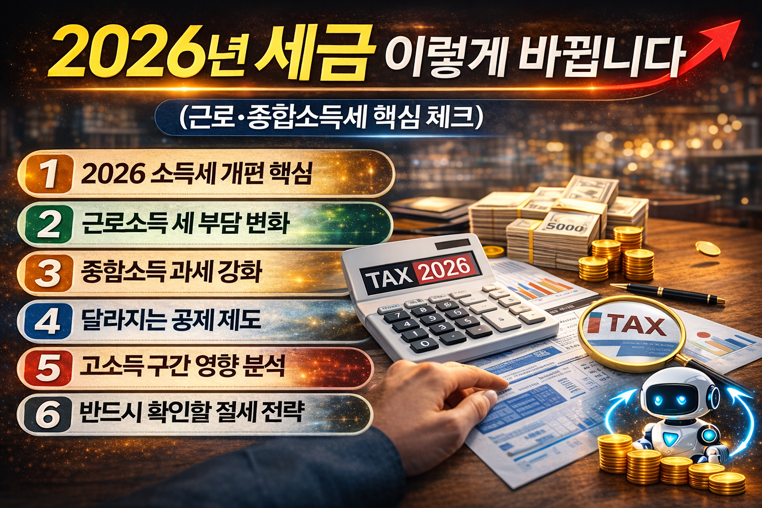 오늘은 2026 근로·종합소득세 개편 핵심 변화를 쉽게 이해할 수 있도록 정리해보겠습니다.