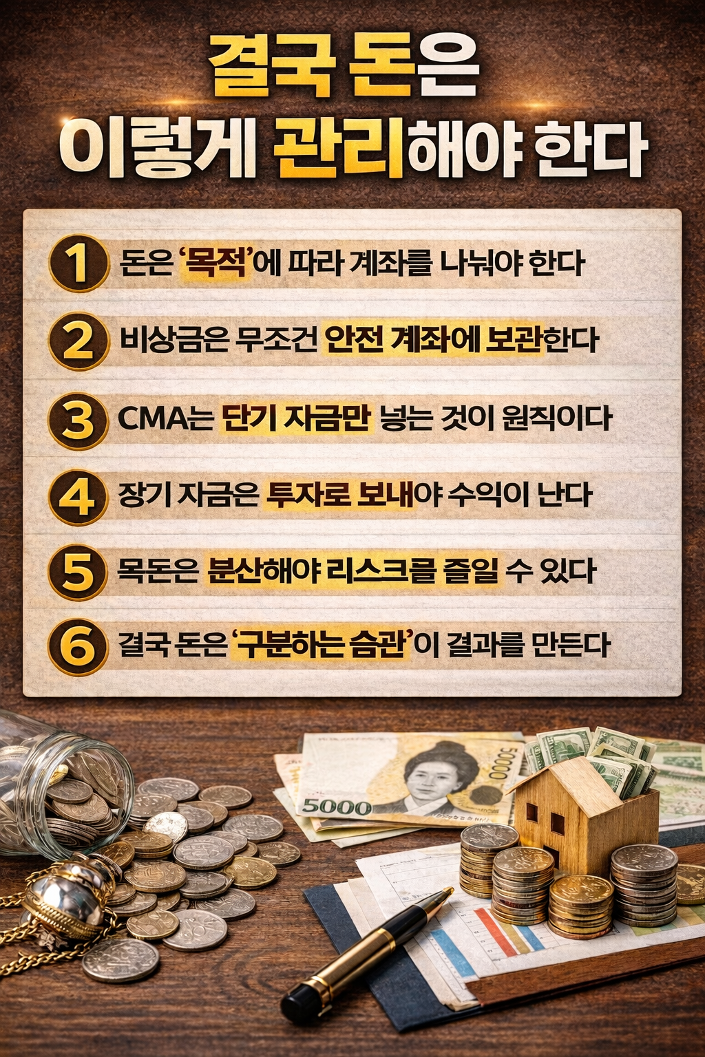 👉 지금 내 돈이 어디에 들어가 있는지, 목적에 맞게 나눠져 있는지 이 두 가지만 점검해 보셔도 결과가 달라집니다.